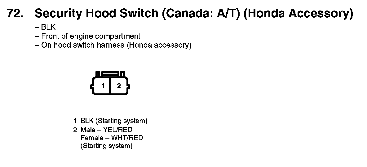 72. Security Hood Switch (Canada: A/T) (Honda Accessory):