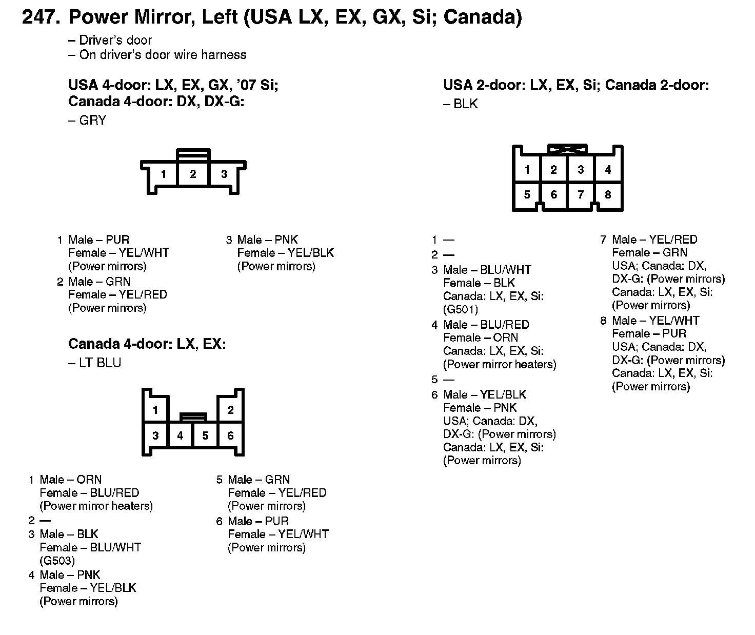247. Power Mirror, Left (USA LX, EX, GX, Si; Canada):