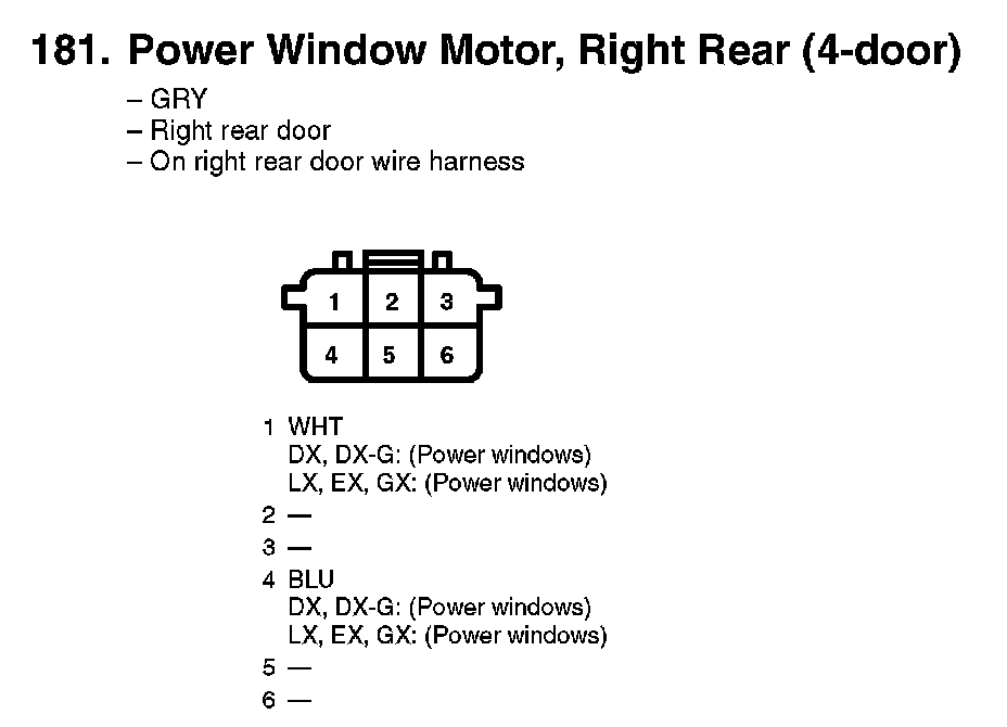 181. Power Window Motor, Right Rear (4-door):