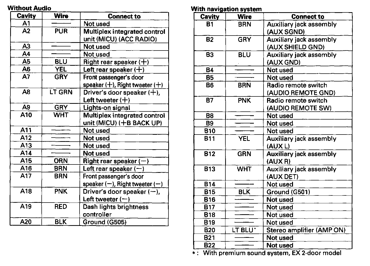 Stereo Amplifier Connector For Inputs And Outputs (with Premium Sound System, EX 2-door Model):