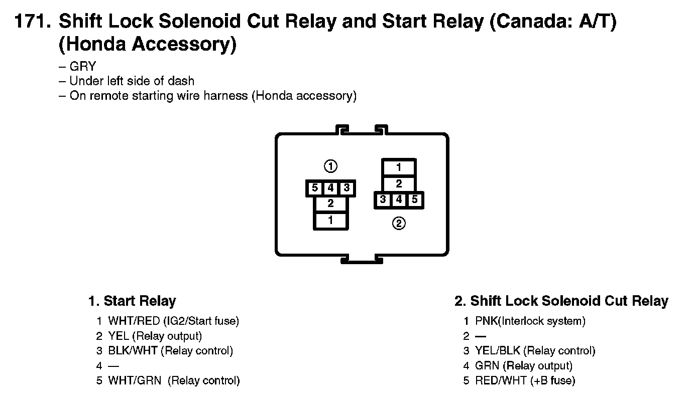 171. Shift Lock Solenoid Cut Relay And Start Relay (Canada: A/T) (Honda Accessory):