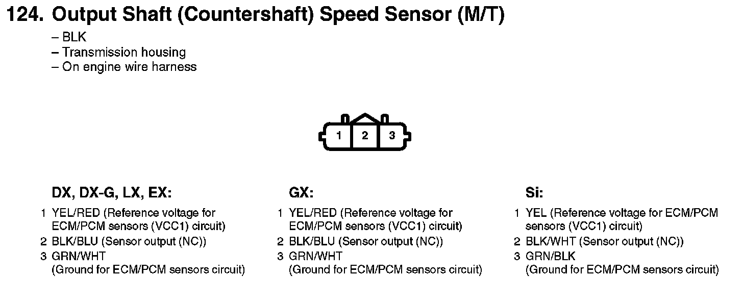 124. Output Shaft (Countershaft) Speed Sensor (M/T):