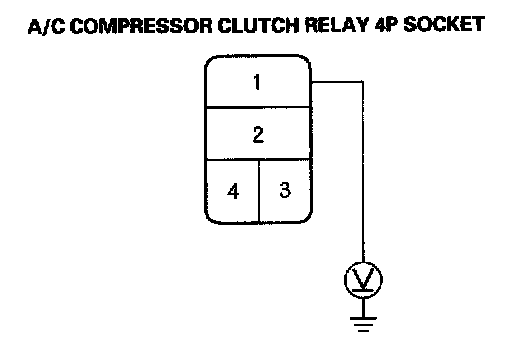 8. Measure the voltage between the A/C compressor clutch relay 4P socket terminal No. 1 and body ground.