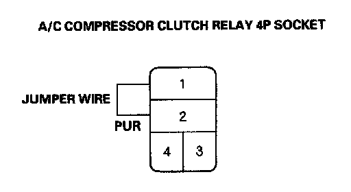 9. Connect the A/C compressor clutch relay 4P socket terminals No. 1 and No. 2 with a jumper wire.