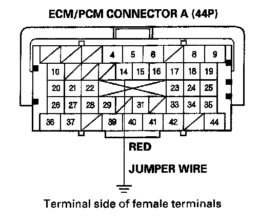16. Connect the ECM/PCM connector A (44P) terminal No. 14 to body ground with a jumper wire.
