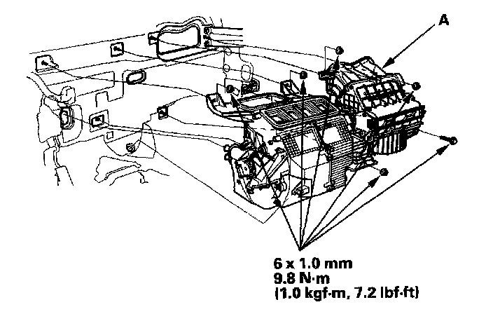 Heater Unit/Core ReplacementSRS components are located in this area. Review the SRS component locations, and the precautions and procedures before repairing or servicing.