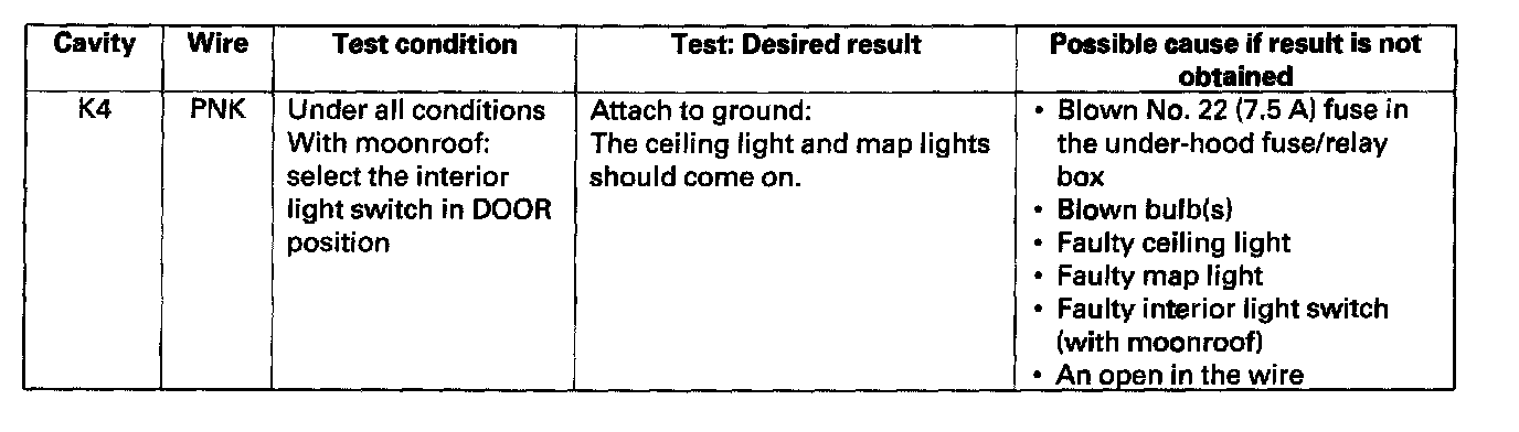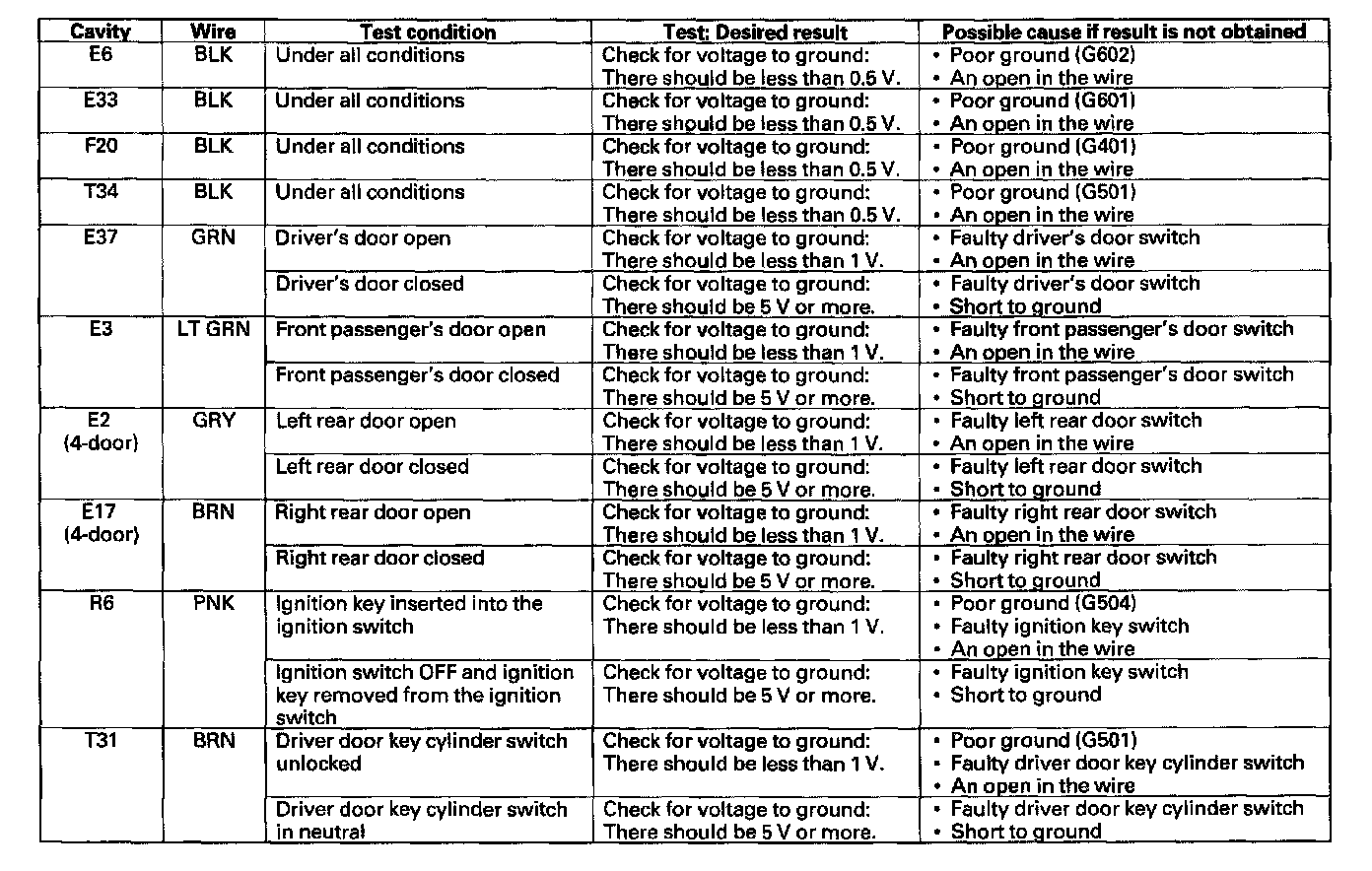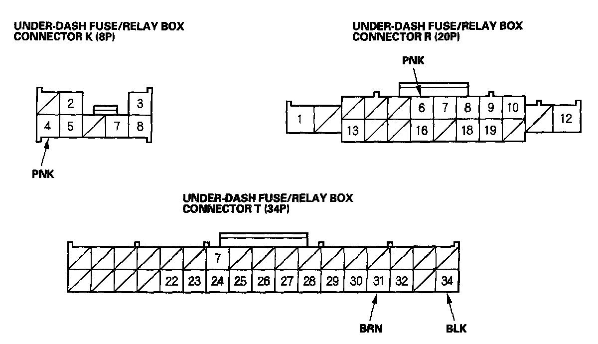 6. Reconnect the connectors to the under-dash fuse/relay box, and make these input tests at the connectors.
