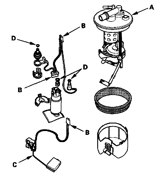 - When installing the fuel gauge sending unit (C), make sure the connection is secure and the connector is firmly locked into place. Be careful not to bend or twist it excessively.