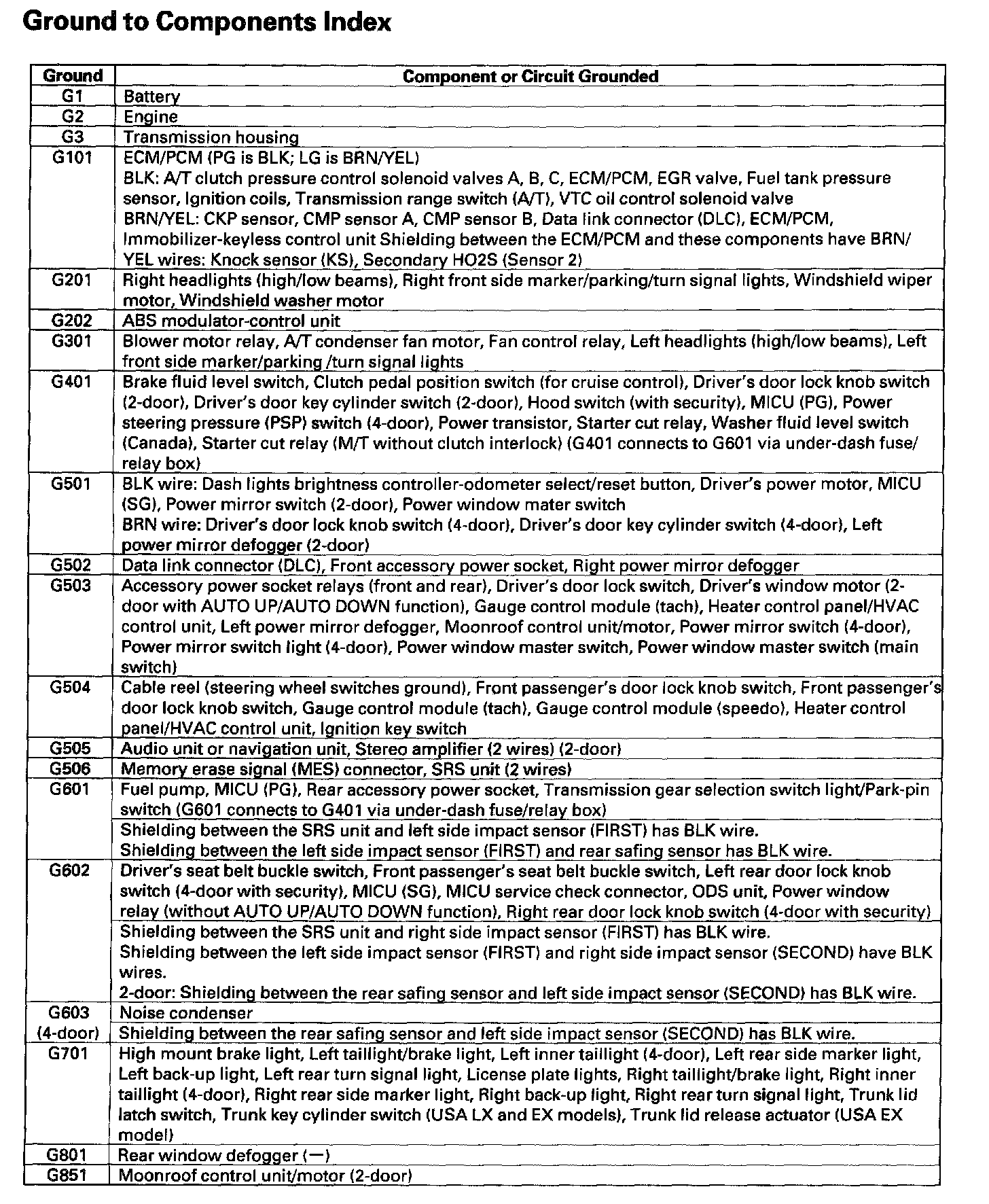 Ground To Components Index: