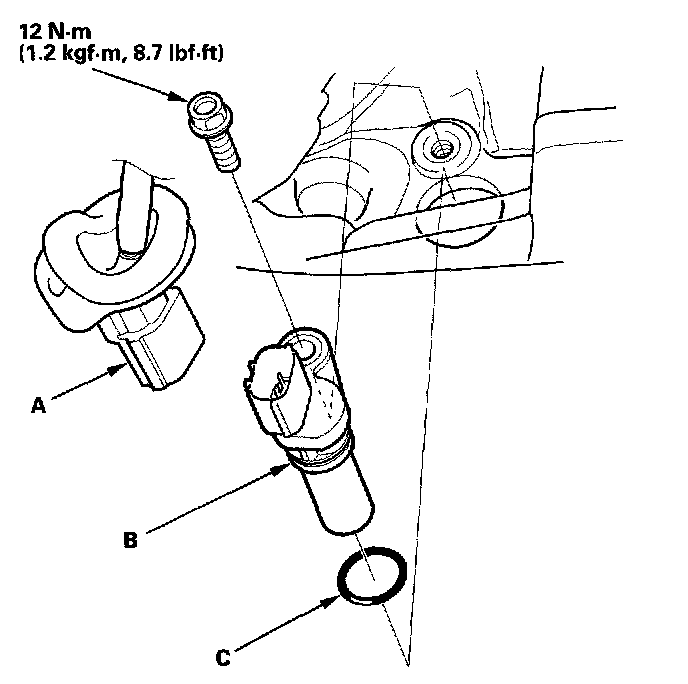 4. Install the sensor in the reverse order of removal with a new O-ring (C).