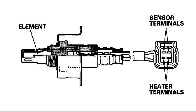 The secondary HO2S detects the oxygen content in the exhaust gas downstream of the three way catalytic converter (TWC), and sends signals to the ECM/PCM which varies the duration of fuel injection accordingly. To stabilize its output, the sensor has an internal heater. The ECM/PCM compares the HO2S output with the A/F sensor output to determine catalyst efficiency. The secondary HO2S is located on the TWC.