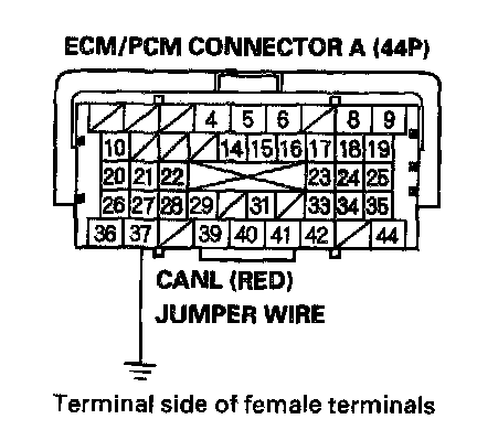 13. Remove the jumper wire from ECM/PCM connector A (44P).