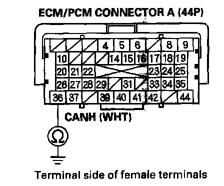29. Check for continuity between ECM/PCM connector terminal A36 and body ground.