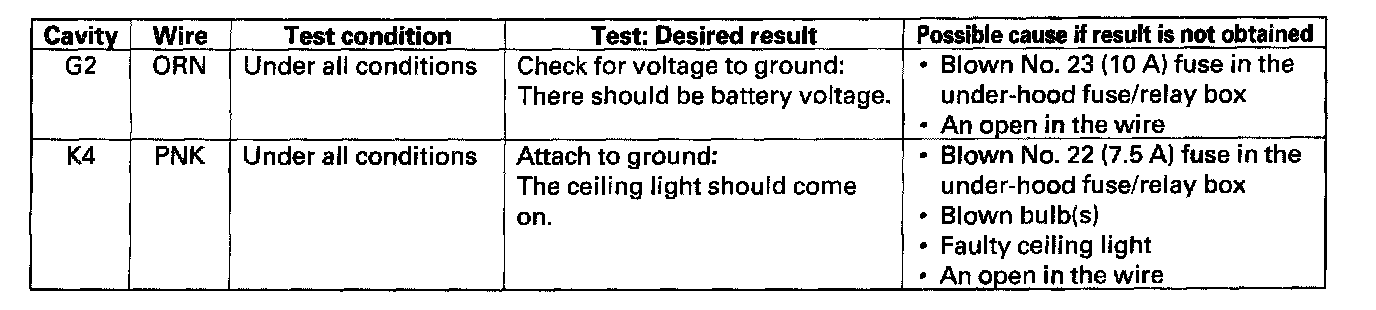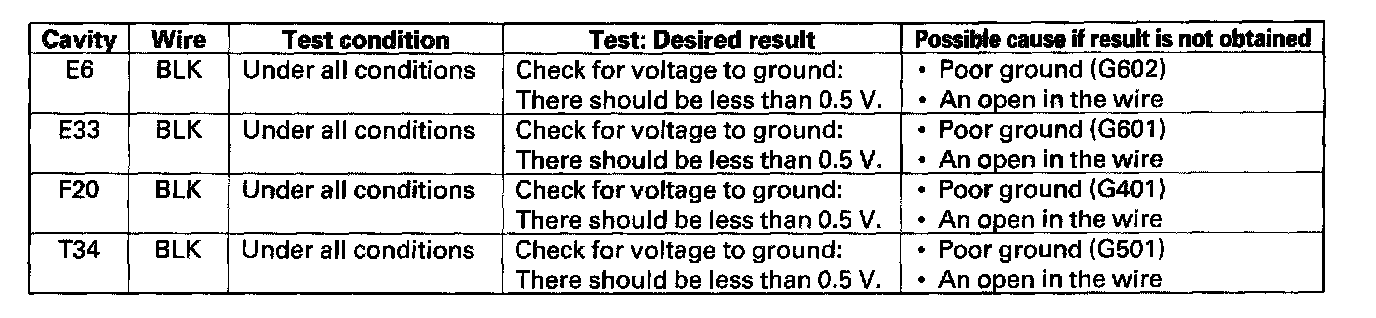 6. Reconnect the connectors to the under-dash fuse/relay box, and make these input tests at the connectors.