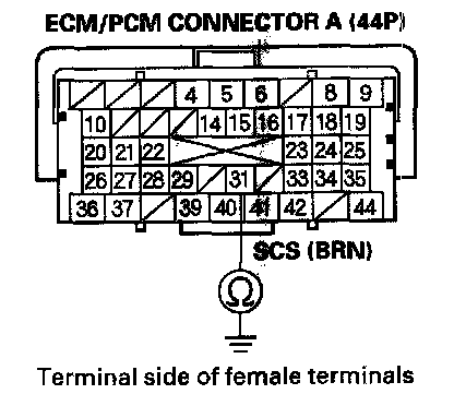 7. Check for continuity between ECM/PCM connector terminal A31 and body ground.