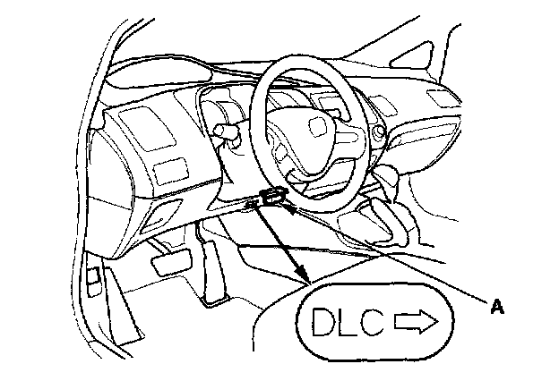 2. If the MIL stays on, connect the HDS to the data link connector (DLC) (A) located under the driver's side of the dashboard.
