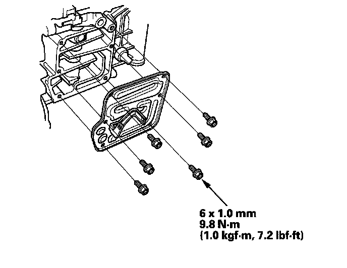Oil/Air Separator Installation1. Remove all of the old liquid gasket from the oil/air separator mating surfaces, bolts, and bolt holes.