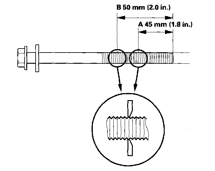 Cylinder HeadMeasure the diameter of each cylinder head bolt at point A and point B.