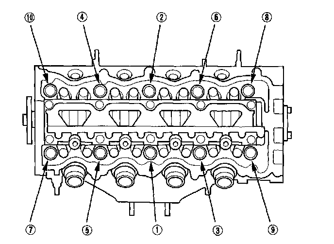 Tighten the cylinder head bolts in sequence to 39 Nm (4.0 kgf-m, 29 ft. lbs.). Use a beam-type torque wrench. When using a preset-type torque wrench, be sure to tighten slowly and do not overtighten. If a bolt makes any noise while you are torquing it, loosen the bolt and retighten it from the first step.