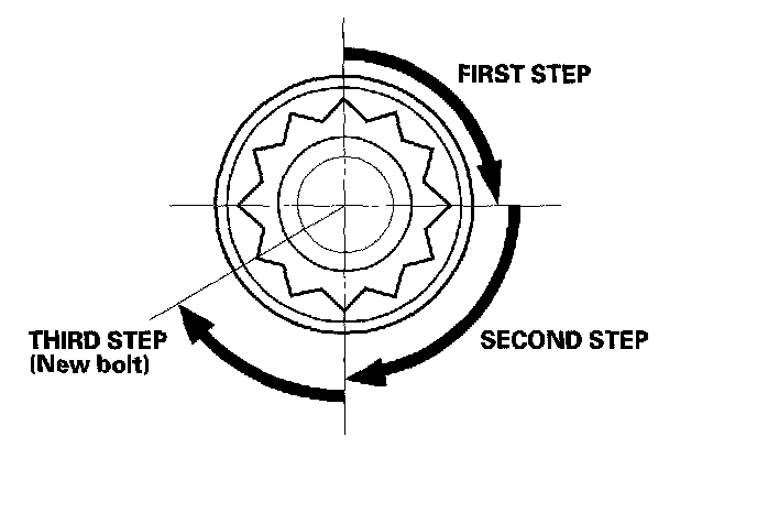 After torquing, tighten all cylinder head bolts in two steps (90° per step). If you are using a new cylinder head bolt, tighten the bolt an extra 60°.