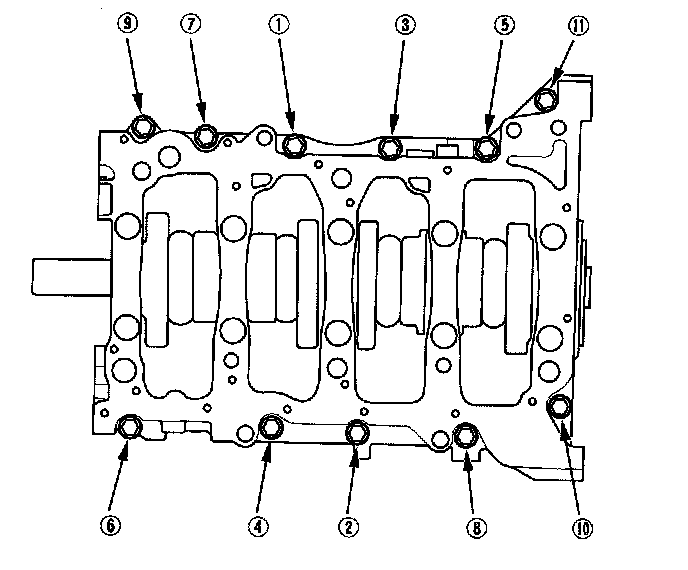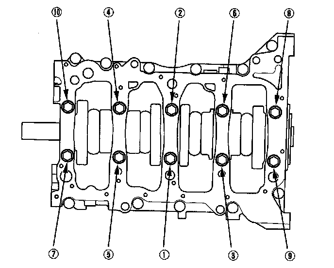 Tighten the bearing cap bolts, in sequence, to 25 Nm (2.5 kgf-m, 18 ft. lbs.).