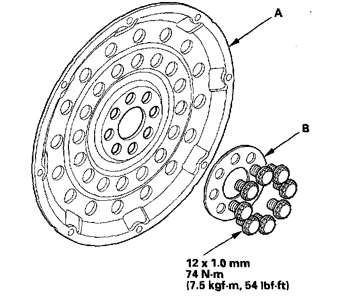 Install the drive plate and washer on the engine crankshaft, and tighten the eight bolts in a crisscross pattern in two or more steps.