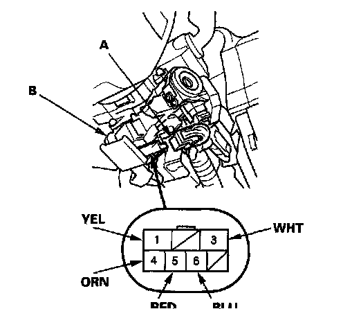 4. Disconnect the 7P connector (A) from the ignition switch (B).