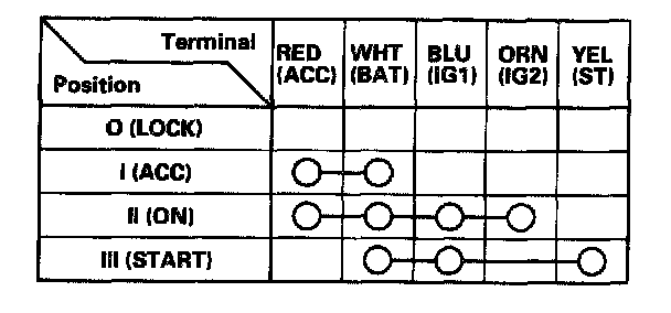 6. If the continuity checks do not agree with the table, replace the ignition switch.