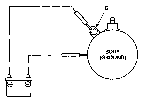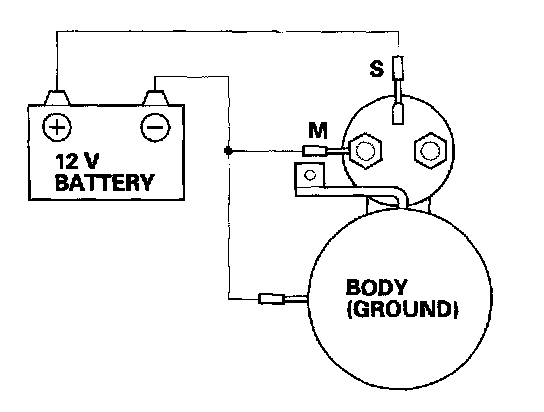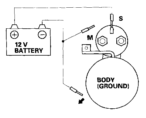 4. Disconnect the battery from the M terminal. If the pinion does not retract, the hold-in coil of the solenoid is working properly.