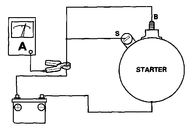 6. If the electric current and motor speed meet the specifications when the battery voltage is at 11.5 V, the starter is working properly.