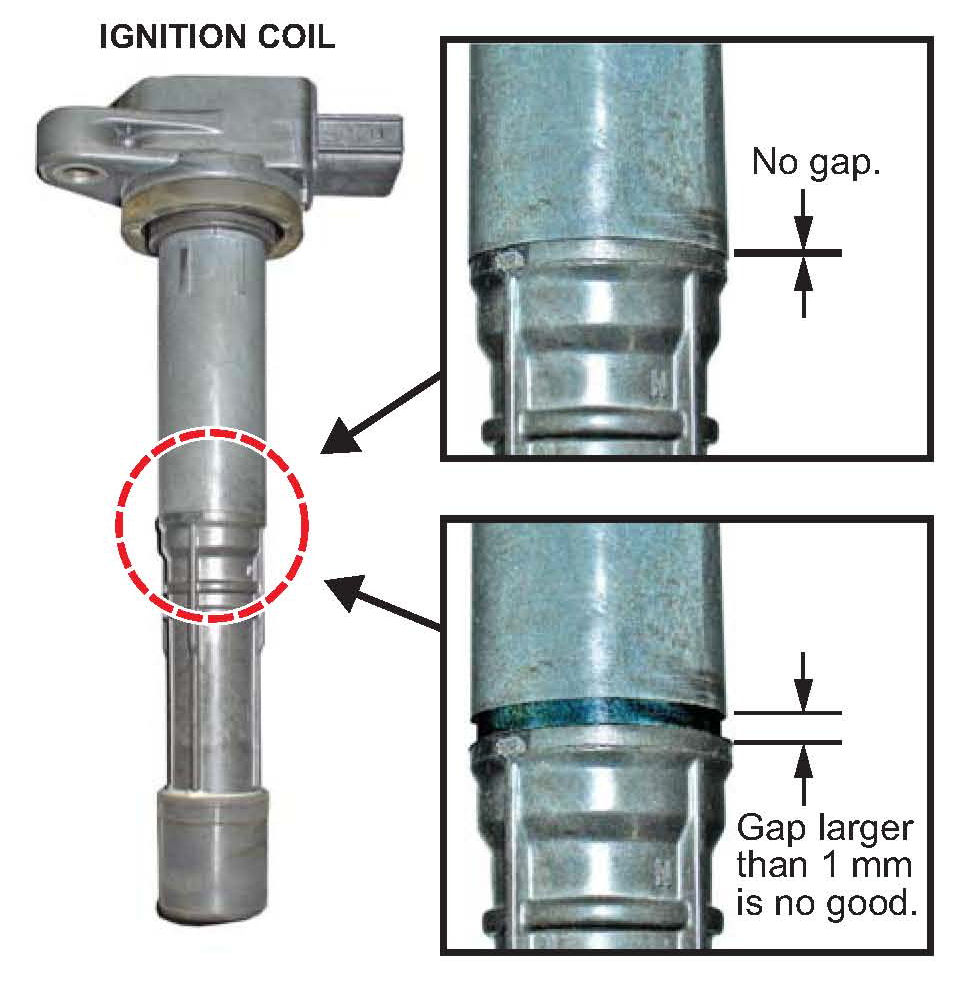 3. Inspect the ignition coils for lengthening due to overheating.