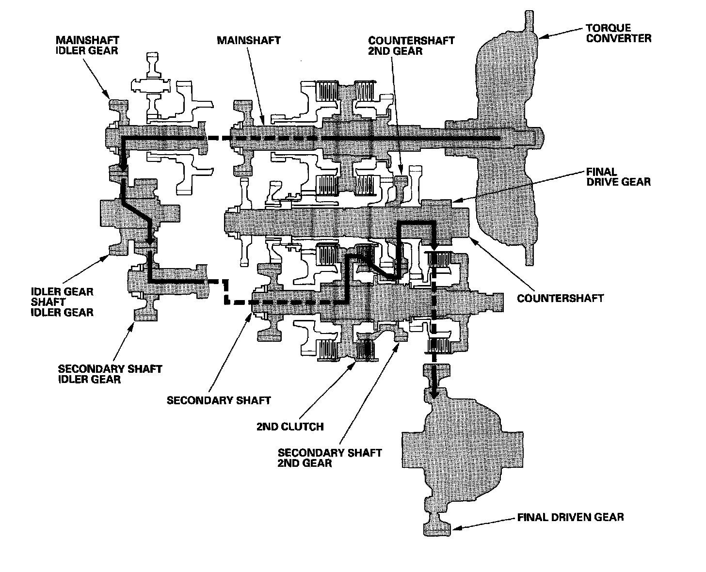 ^ Hydraulic pressure is applied to the 2nd clutch, then the 2nd clutch engages the secondary shaft 2nd gear with the secondary shaft.