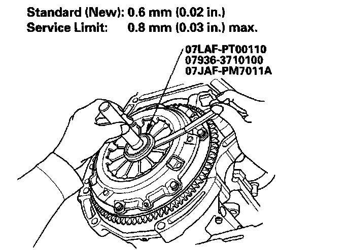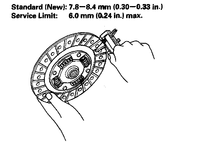 9. Measure the clutch disc thickness. If the thickness is less than the service limit, replace the clutch disc.