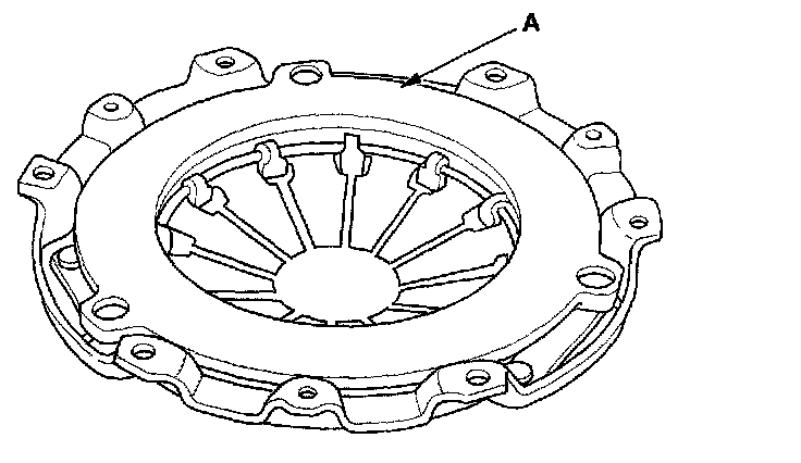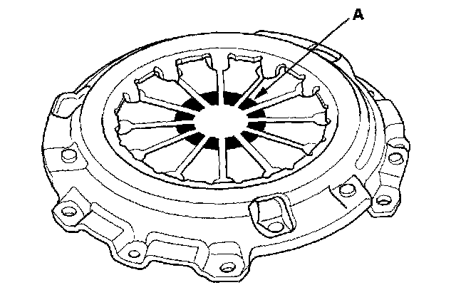 4. Inspect the fingers of the diaphragm spring (A) for wear at the release bearing contact area.