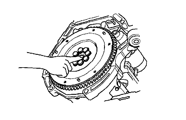 2. Remove the flywheel mounting bolts in a crisscross pattern in several steps, then remove the flywheel.