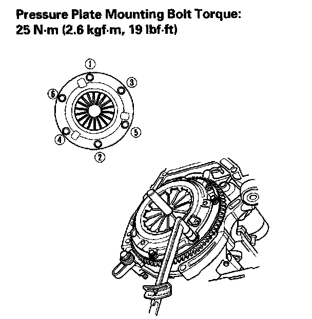 6. Torque the mounting bolts in a crisscross pattern. Tighten the bolts in several steps to prevent warping the diaphragm spring.