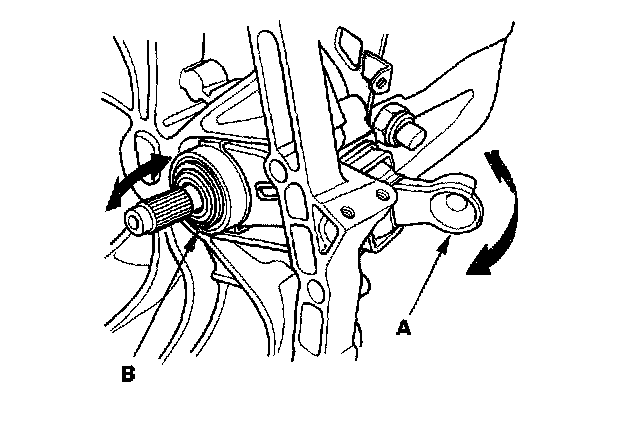 8. Move the release fork (A) right and left to make sure that it fits properly against the release bearing (B) and that the release bearing slides smoothly.