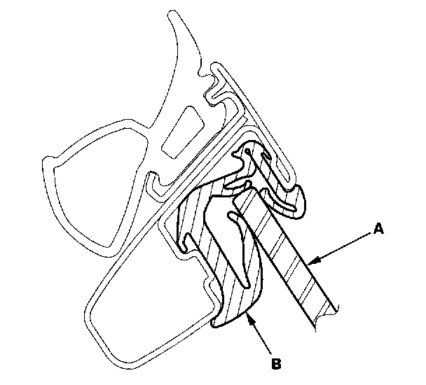 6. Raise the glass fully, and check for gaps. Also make sure that the glass (A) contacts the glass run channel (B) evenly.