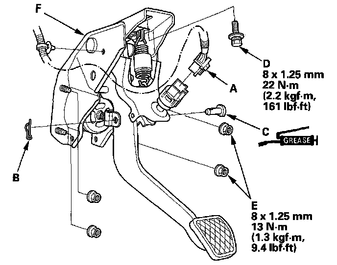 4. Remove the brake pedal with bracket (F).