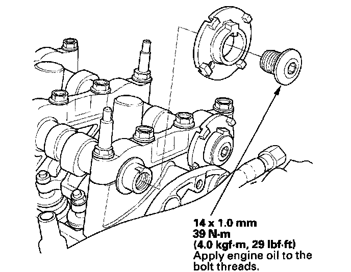 3. Hold the camshaft with an open-end wrench, then loosen the bolt.