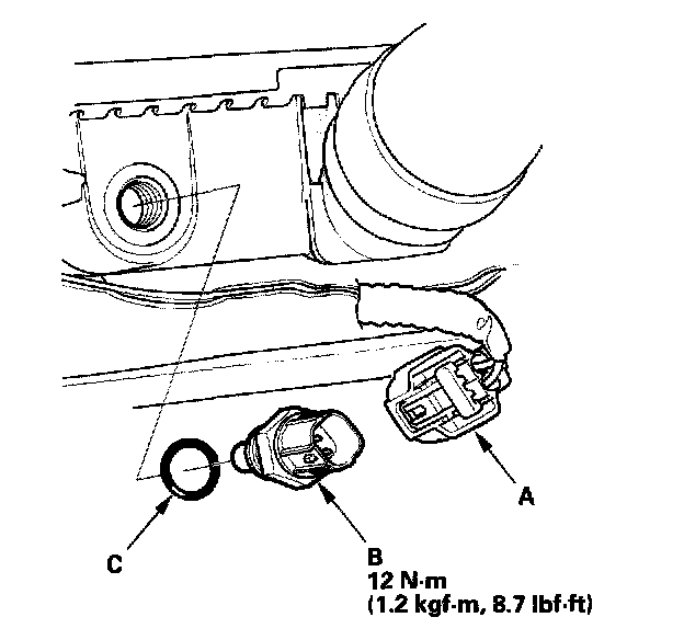 3. Disconnect the ECT sensor 2 connector (A), then remove ECT sensor 2 (B).