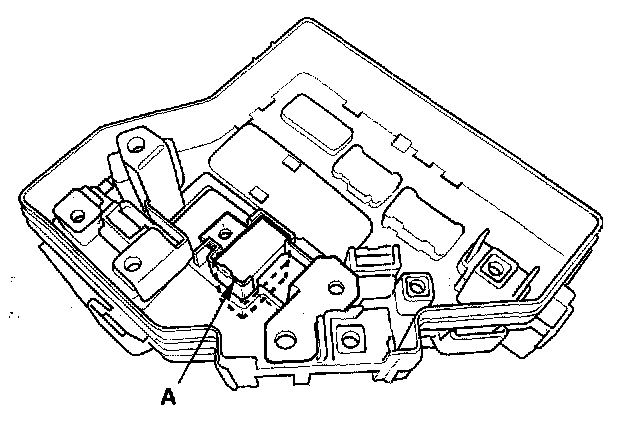 4. Using two flat-tip screwdrivers, release the tabs (A), and pry up the fuse/relay box base (B) from the fuse/relay box housing (C).