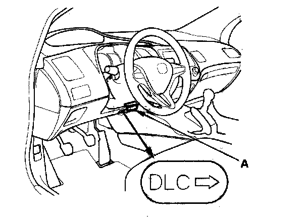 1. Connect the HDS to the data link connector (DLC) (A) located under the driver's side of the dashboard.