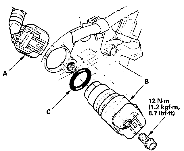 4. Install the sensor in the reverse order of removal with a new O-ring (C).