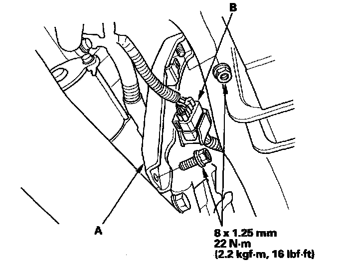 Install the intake manifold bracket (A), then install the connector (B).