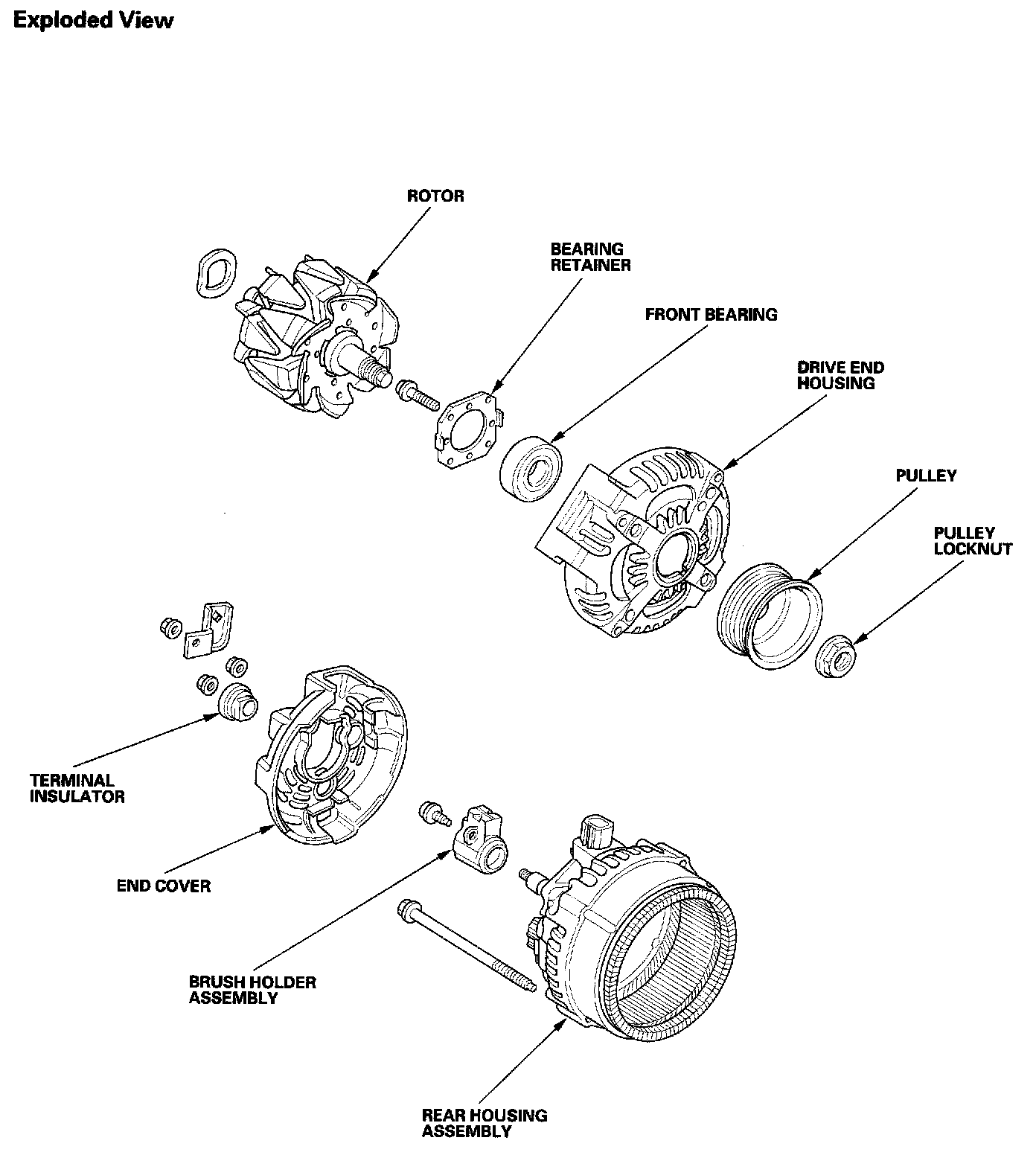 22. After assembling the alternator, turn the pulley by hand to make sure the rotor turns smoothly and without noise.