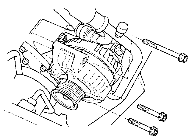 8. Remove the three bolts securing the alternator.