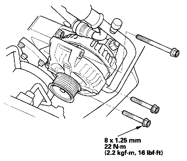 2. Tighten the three bolts securing the alternator.