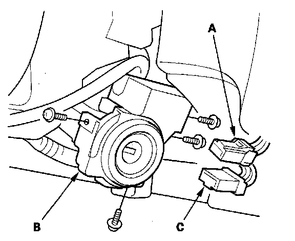 3. Disconnect the 7P connector (C) from the ignition key switch.