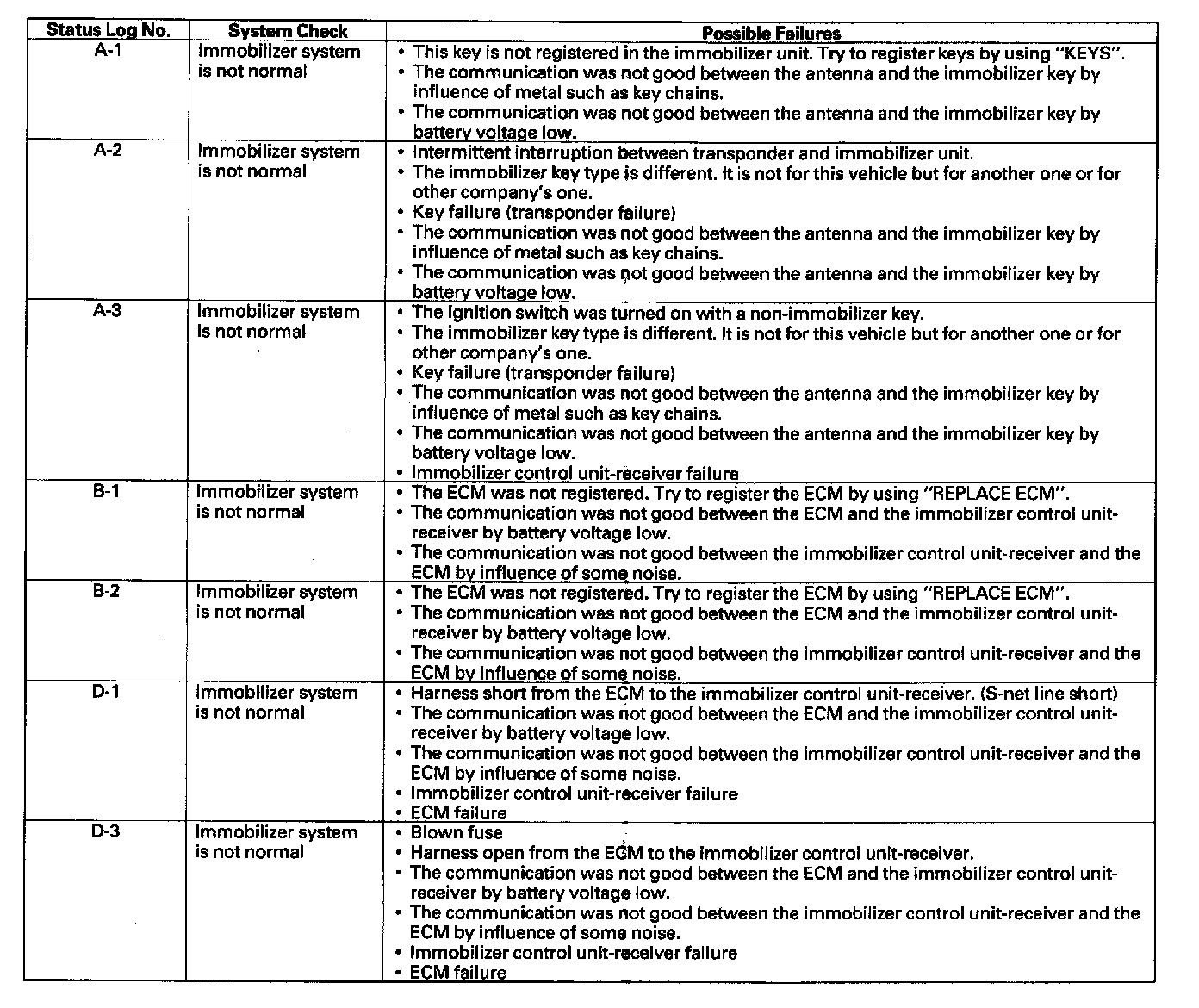 Immobilizer System Check